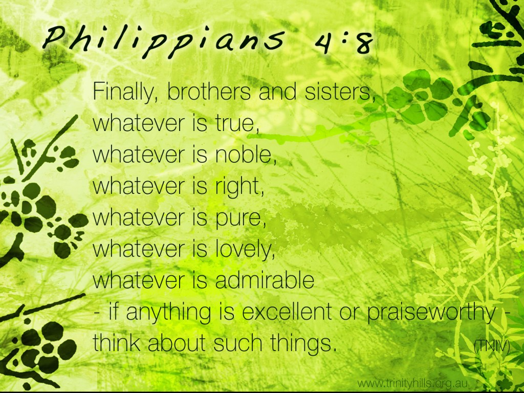 What can you do? Huh? THINK ON THOSE THINGS. Think on the things you can do! Those things are TRUE, too. Those things are lovely. Those things “are” admirable. Those things “are” excellent and praiseworthy. Think about such things!